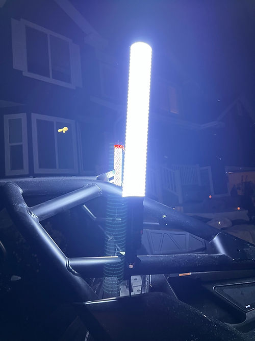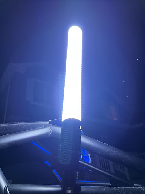 The MB Whips Radiant Pro series is hands down the brightest whip setups we've ever made. With up to 1600+ LEDs in a single whip, the Radiant Pros can't be missed. You aren't just lighting up your whole camp with this whip, you're lighting up the whole hillside or dune. The Radiant Pro whips are a single color whip with maximum light output in mind. Simply pick you color, and we'll build you the brightest 2 foot whip you've ever seen. Already have Flash whips and want to add these to your LED Whip options, no problem. The Radiant Pro uses the same bases and controllers as the Flash line so you are already wired and ready. The Radiant Pro Series Whips are not flexible. These are a very rigid setup, so you will want to mount them under the roofline if you are encountering trees or branches in your riding areas. We do have Springs available that work with this setup, but we would still recommend they be mounted in such a way as to avoid impacts. Each Radiant Pro Whip Pair Includes The Following:Pair of Radiant Pro 2ft whips in your specified color Pair of our powered quick release bases w/bare leads for power Two premium black MB Whips flags Two flag mount clamp sets Two dust caps