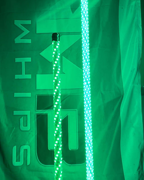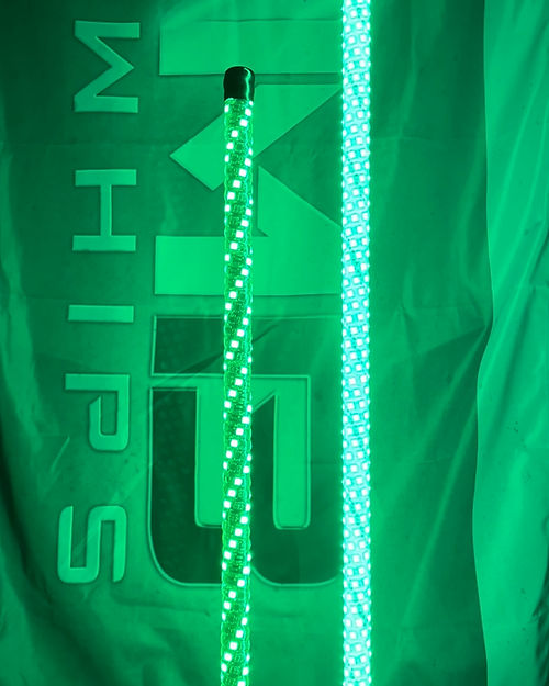 If you are simply looking for the brightest fixed color whip possible, then you’ve come to the right place. The MB Radiant series provides serious LED light output with 600 LEDs per whip on our 48” whip and 300 for the 24". Those high output LEDs pack some series power and can cast shadows hundreds of yards away. This is the brightest whip we’ve ever made. There’s no doubt you’ll be seen on any trail or dune! Already have some Flash series whips with the power in base design? No problem, these whips use the same pinout design and can work on the Flash whip bases without issue. If you do not have our whips already, no problem with that either. Each whip pair will come with two powered bases with a length of wire with the power and ground bare tips. Simply run power from a switched power or accessory power source to each base and you are good to go. We also offer a Plug N Play wiring harness option in our accessories section that includes a full relay harness, fuses and a lighted whip switch for the dash. These whips are not designed to be run directly to the battery without a fuse and switch.