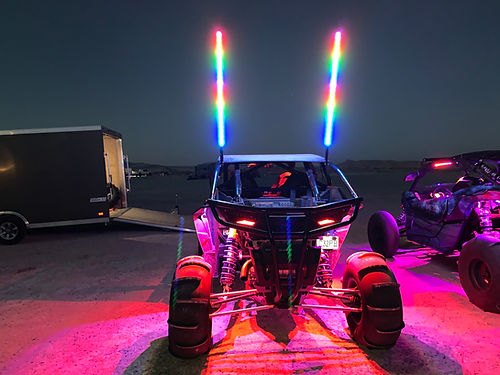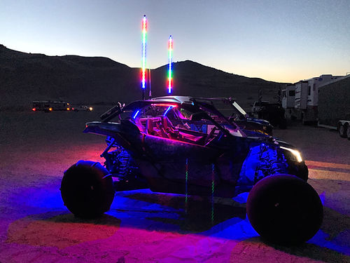The Flash Synchronized Paired Whips are the absolute top of the line! With tight wrapped, high-output LEDS, combined with innovative features and the smoothest and fastest quick release system available, the Flash stands above the rest! The Flash whips also feature full Bluetooth control via the Pro RGB app AND an RF remote! Now you don't have to choose between app or remote as the Flash gives you both! Want to see the Flash Whip Overview Video on Youtube? Click below!https://youtu.be/j2i75X5sYQgThe Flash series quick release bases are the best on the market for two very simple reasons, they are quick and they are clean. Most synchronized whips on the market require a separate pigtail connection that you have to mess with every time you want to connect your whips, the Flash has evolved beyond that. The innovative Flash whip bases feature all the wiring that the whip needs built inside the base itself. Simply drop the whip on the base and you're 100% ready to go in about a second. Each Flash Whip Pair Includes The Following:Pair of whips in your selected size Two premium, triple-stitched MB Whips flags Two flag mount clamp sets Two dust caps Whip controller harness Remote control Generic quick install guide Our Flash Bluetooth enable controller harness will include 3 wires that can be used for street legal integration. The street-legal option will force the left or right whip to blink amber and turn both whips red when the brake is pressed. In order for this function to operate, the associated wires will need to see power only when the blinker or brake light is pressed. 2 Foot Whips - Over 150 5050 LEDs Per Whip - $249.953 Foot Whips - Over 250 5050 LEDs Per Whip - $279.954 Foot Whips - Over 350 5050 LEDs Per Whip - $309.955 Foot Whips - Over 450 5050 LEDs Per Whip - $319.95 Note: This kit does not include a full relay harness with a fuse and a switch. If you do not already have a wiring plan in mind, check out our plug n play wiring harness kit which will give you all the length of wire you need to install this setup, even on a 4 seat machine, and it will also include a relay, fuse and Lighted Whip switch. These harnesses are $30 and if this is ordered with the Flash whips, we will apply the proper spade terminals that come with this harness so it will be a true plug-n-play wiring solution.https://www.mbwhips.com/product-page/plug-and-play-wiring-harness-for-whips-or-rock-lightd